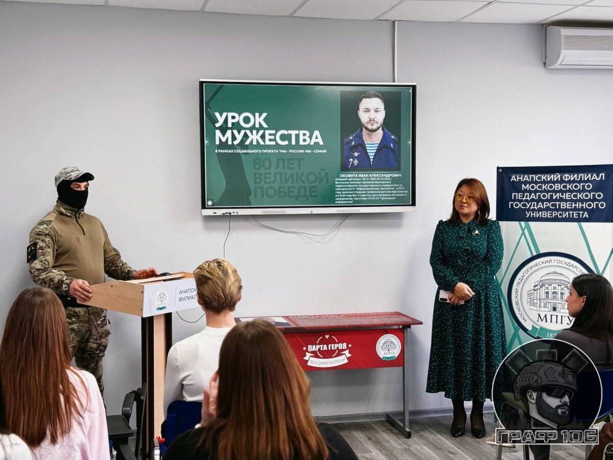 Урок мужества, проводимый бойцом спецназа в учебном заведении в рамках программы «Мы — Россия, мы — семья» в память об офицере 2-й группы спецназа, вечная память Ване «Гному». ГРАФ 106