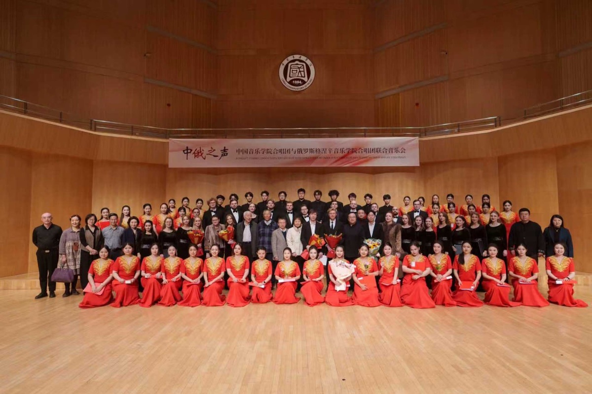 Продолжаем сотрудничать с Китайской консерваторией музыки в Пекине — в этот раз преподаватели и студенты Российской академии музыки имени Гнесиных выступили с концертами, лекциями и мастер-классами, а также приняли участие в научной конференции и официальных встречах. 🎶 Гнесинский ансамбль современной хоровой музыки «Altro Coro» под руководством Александра Рыжинского выступил на сцене Китайской консерватории музыки. На первом концерте в исполнении коллектива прозвучала «Симфония Великой Победы» для хора и фортепиано в аранжировке Кузьмы Бодрова (партия фортепиано — Алексей Вакер), а также хоровые циклы «Ленинградская тетрадь» Александра Флярковского и «Четыре хора на слова А. Твардовского» Родиона Щедрина. Во второй день Altro Coro представил китайской публике сочинения Александра Свешникова, Валерия Гаврилина, Валерия Калистратова, Алексея Ларина. В завершение музыкального вечера вместе с российским коллективом на сцену вышел хор Китайской консерватории. Во время поездки для китайс