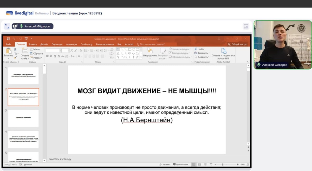 Не рассказывал вроде, но у меня тут сегодня началось новое обучение. Если всё пойдёт по плану, то через 9 месяцев я получу диплом специалиста восстановительного фитнеса. Началось всё с того, что много запросов на восстановление коленей. Оно и понятно, я же вроде как про бег )) Ещё эпизодически прилетают вопросы, можно ли бегать с грыжами, протрузиями и прочими травмами, заболеваниями и патологиями. Можно конечно по крупинкам и на собственном опыте искать. Но с появлением дипсиков и чатовжипити приходится хорошо перепроверять инфу из интернетов, а у меня для этого нет компетенций. За ними и пошёл учиться в IRFit. Пугает только, что учиться 9 месяцев. Но полагаю, что это не так уж и много для такого объёмного курса. Сегодня было первое вводное занятие. Говорили в основном про плоскости движения: горизонтальная, фронтальная и сагиттальная. Вроде всё просто, но в некоторых моментах мозг потрескивал. Дальше больше, жду не дождусь ))
