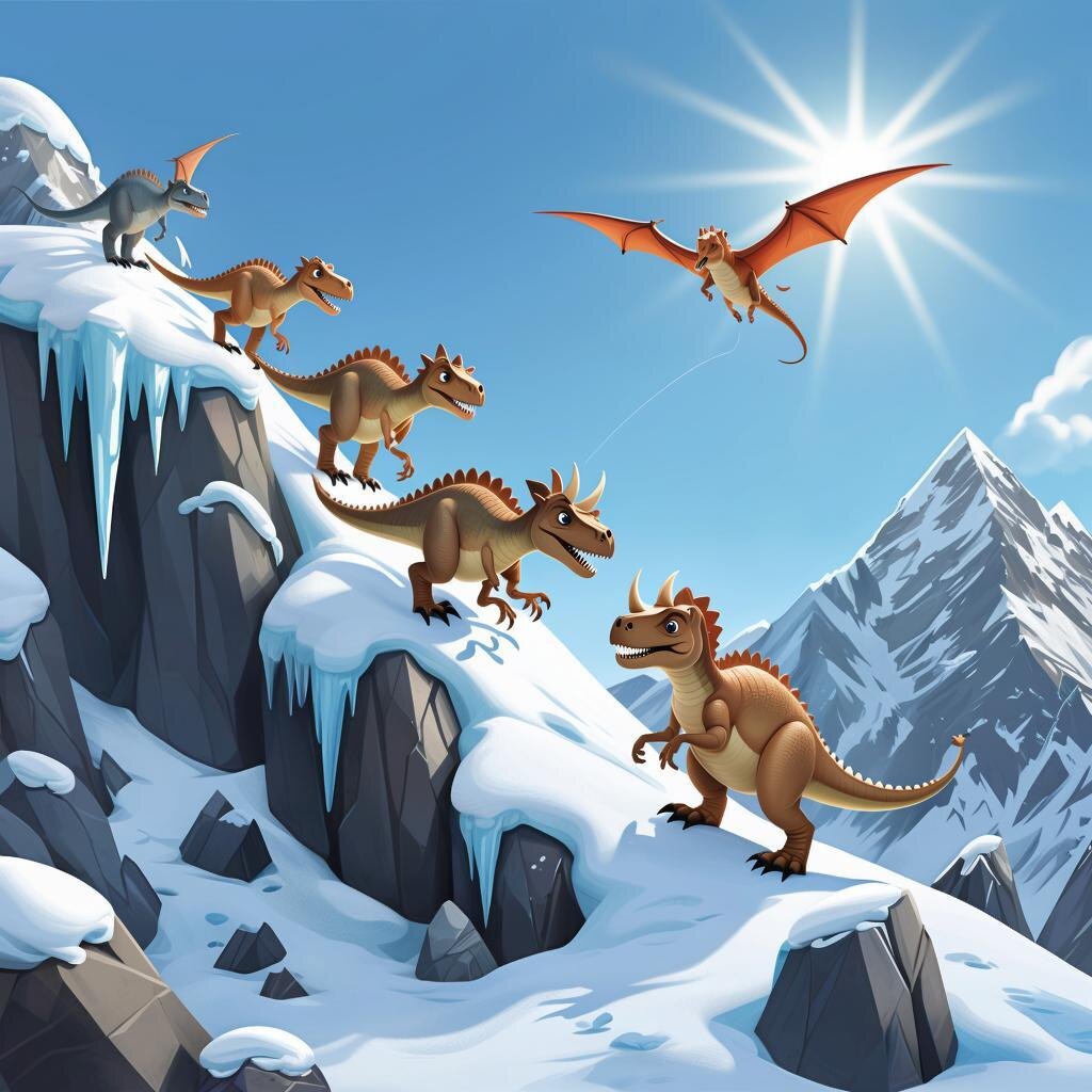 В те времена, когда трава была выше деревьев, а солнце было молодым и жарким, жило в уютной Зеленой долине племя динозавриков. Они были дружными и веселыми, но их вожак, маленький, но очень умный стегозаврик по имени Шпорка, всегда смотрел на дальнюю громадную гору, вершина которой терялась в облаках. Эта гора называлась Эверест, и о ней ходили легенды. Говорили, что там живут духи ветра, что ее склоны высечены изо льда, а на самой макушке мира спит древнее солнце. Как-то раз Шпорка собрал своих друзей. —Я хочу покорить Эверест! — объявил он, гордо подняв свои костяные пластины. Все замерли. Трехрогий малыш Троха фыркнул: —Но мы же маленькие! А гора большая-пребольшая! — Сила не в росте, а в сердце! — возразила длинноший диплодок Несси. — А если мы будем вместе, нам всё по плечу. Их поддержал быстрый и юркий велоцираптор Чапик. Так родилась великая экспедиция. Путь их был долгим и полным испытаний. Сначала они шли через Цветущий луг, где приходилось пробираться сквозь травяные д