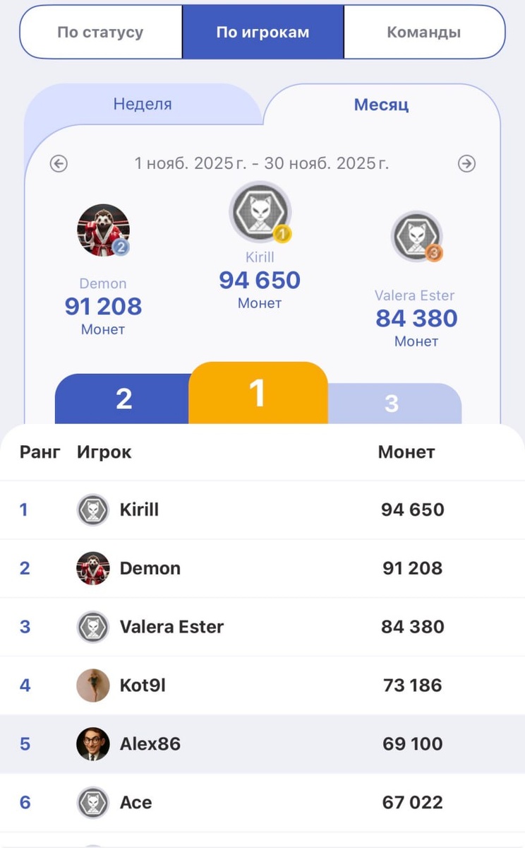 🏆 Личный зачет и таблица командного турнира ноября в фэнтази Stats Fight