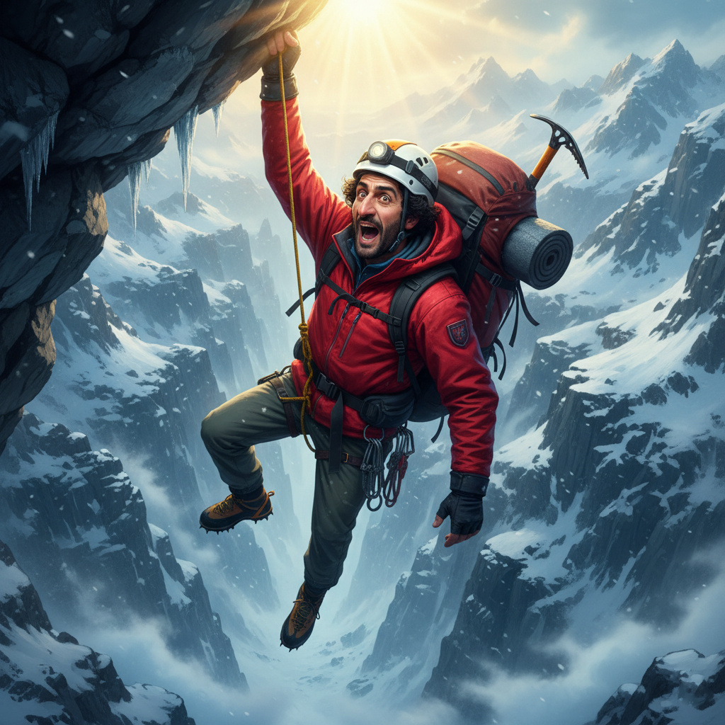 Ползёт на Эверест одинокий альпинист. Его путь труден и тернист, но несмотря ни на что он продолжает свой подъём. И вот, на очередном препятствии, у него рвутся стропы, и срываются страховки, после чего он летит в пропасть. Падая, он изловчившись успевает зацепиться одной рукой за край скалы и в таком отчаянном положении повисает над бездной. Охвативший его ужас заставляет закричать, что есть мочи: - Помогите! Спасите! Кто-нибудь меня слышит? Но вокруг абсолютная тишина. Только слышны порывы ветра и эхо от его криков. На одной руке долго не провесишь, и альпинист почувствовал как пальцы, потихоньку сами начали разжиматься. Поняв, что помощи ждать неоткуда, несчастный от отчаяния снова возопил, но на этот раз уже обращаясь к Богу: - Господи помоги! Господи услышь меня! И вдруг он слышит голос: - Что ты хотел? Обалдевший от шока альпинист смог только удивлённо выдавить из себя: - Кто это? - Господь! Так что же ты хотел? Обезумевший мужик с надеждой взмолился ещё раз: - Господи помоги!