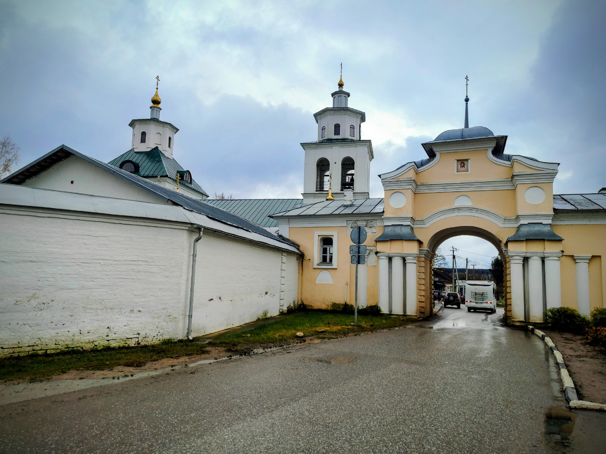 Некогда они служили не только въездными, но и церковными воротами. Поэтому сверху- икона Спаса Нерукотворного. Возле иконы день и ночь горела лампада. Заблудиться гостям не давала.