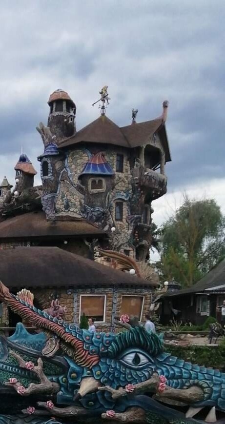 Попали мы как-то раз с детьми в сказочную Вихляндию. А находится она в городе Козельске, Калужской области. Зашли мы значит. И перед собой увидели сказочный дом, похожий на замок чудища лесного. Как оказалось, это был дом создателя подворья. Рядом купили билеты, и отправились навстречу к волшебным приключениям. Что мы там только не видели! С какими существами только не сталкивались! От бесчисленного колличества вымышленных персонажей разбегаются глаза. Это фантастическое сказочное место, наполненное очень забавным юмором. Скульптор который это всё выдумал, вероятнее всего невероятно талантлив, с хорошими художественными способностями. Человек у которого огромное терпение и внимательность. Парк находится на немалой территории. И он постоянно в процессе увеличения. Непрерывно рождаются новые герои, у которых всё продумано до самых малейших деталей. Для тех людей которые уже были там, полагаю будет интересно посетить его снова. А встретили мы там, мило улыбающуюся нам злобную бабу Ягу.