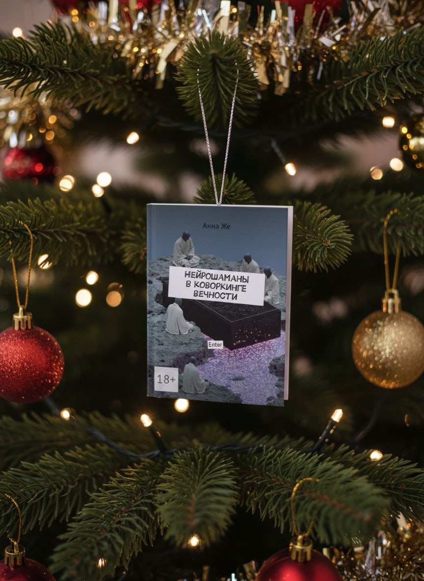 В предверии наделала в NanaBanana картинок новогодних со своей книжкой. Делается такое просто - загружаешь картинку "продукта" и пишешь. Промты до ужаса просты: Нарисуй ёлку из книг с обложками как в референсе. Нарисуй книгу как елочную игрушку на Новогодней елке. А почитать/купить книжку можно тут 😎🤘
