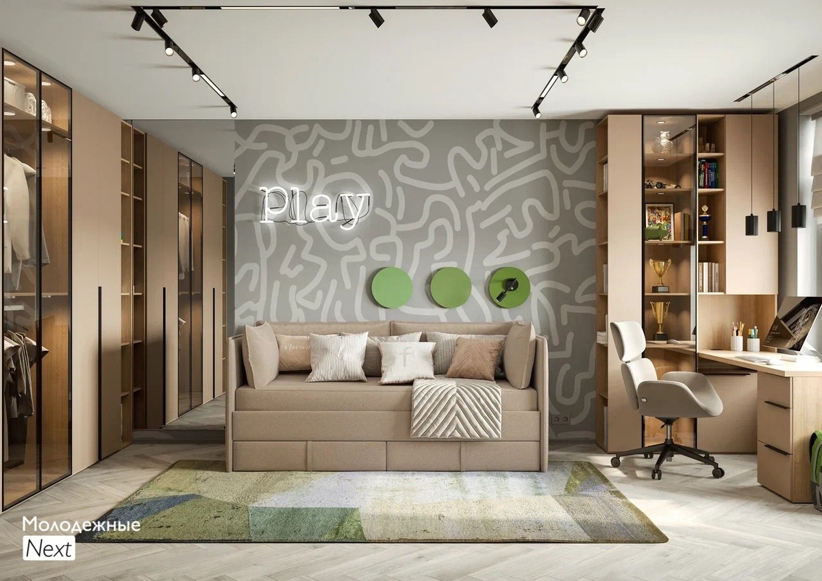 Молодёжные комнаты Next✨ С наступлением Нового года многие семьи обновляют детские и подростковые комнаты. Это удобный момент пересмотреть потребности ребёнка и организовать пространство более функционально. Коллекция Next подходит для таких задач. ✔️ https://www.shatura.com/collections/molodezhnye/molodezhnye--next/?utm_source=vk&utm_medium=post Лаконичный дизайн, прямые линии и спокойная палитра помогают создать современную комнату без лишних деталей. Светлая текстура Bowie и глиняно-серые фасады дают универсальный фон, который легко дополнить постерами, текстилем и личными вещами ребёнка. Модули Next можно собрать под основные зоны — сон, работу и хранение. Шкафы доступны в двух высотах: 2330 и 2490 мм. При необходимости их дополняют антресолями высотой 352 мм, что позволяет использовать пространство до потолка и увеличить объём хранения. В составе решения используется диван-кровать Sona. Модель раскладывается с 90×200 мм до полноценного размера 180×200 мм и подходит для ежеднев