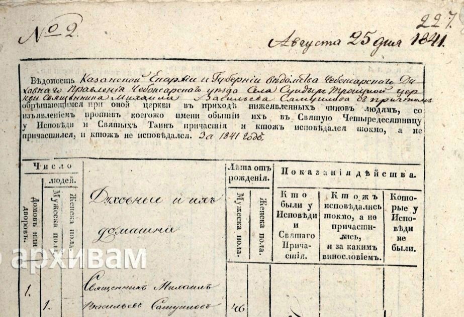 1841 год. село Сундырь. Чебоксарский уезд. Коротковы. Духовные книги.