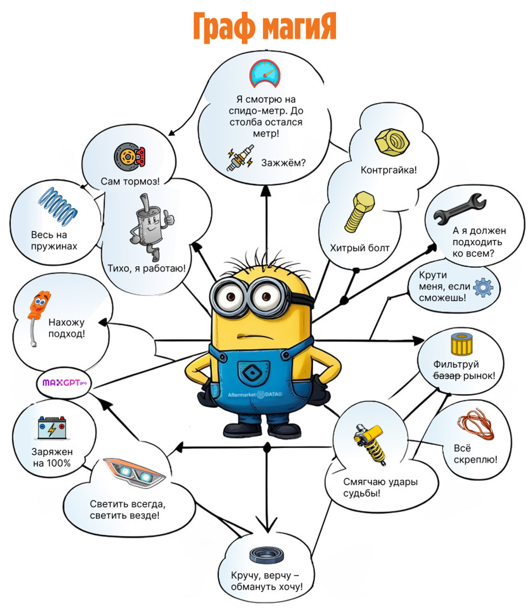 Всего для обучения нейросети аналитики aDat © использовали ассортимент ~ 4.7 млн. исходных SKU запчастей.
