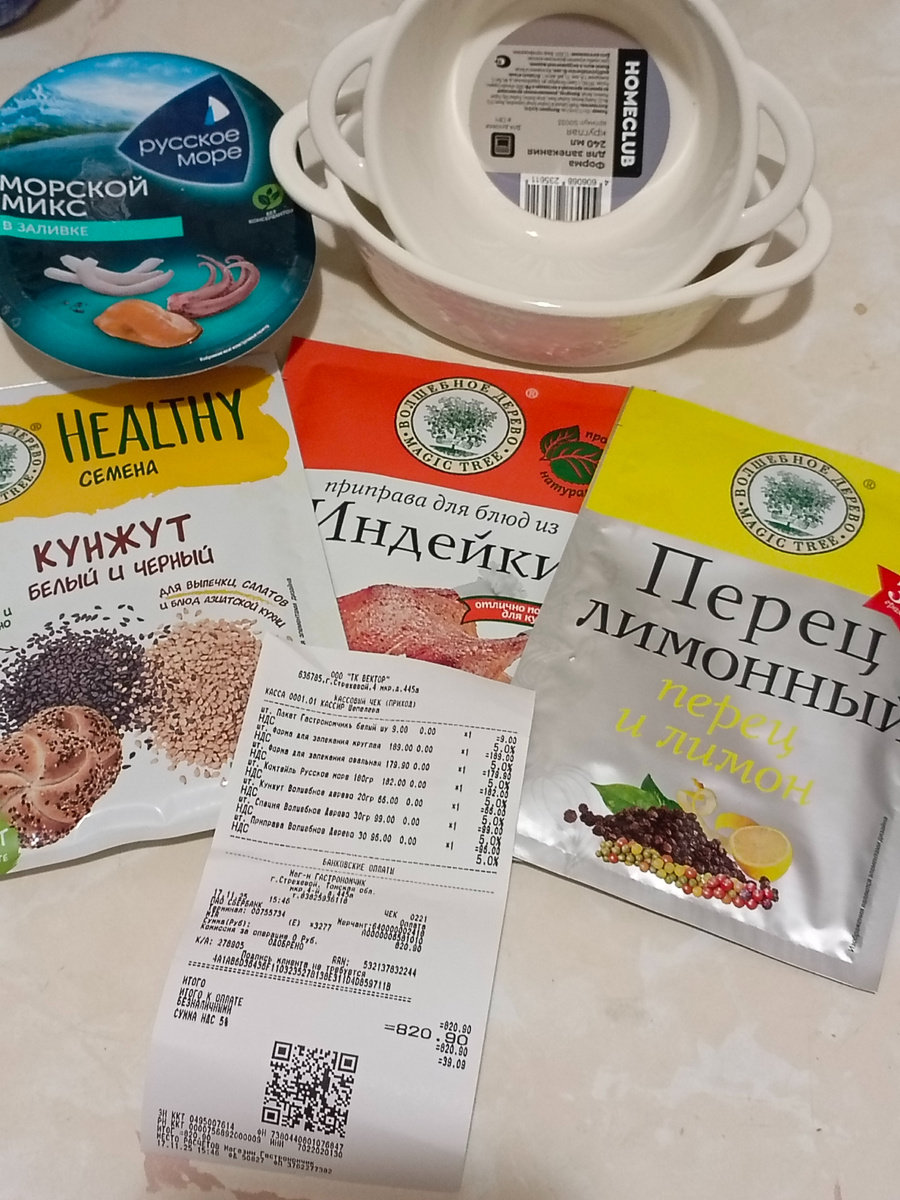 Новый маникюр – это всегда праздник для души! Любуюсь своими ухоженными ручками и бегу в контору за направлением на медосмотр. А дальше – по плану магазины и Вайлдберриз. Гололёд – это, конечно, испытание для вестибулярного аппарата. Передвигаюсь, как пингвин, зато какая тренировка равновесия! Вчера было +5, все подтаяло, а сегодня -5, начало подмерзает. Первая остановка – "Гастрономчик". Там я нашла две очаровательные формочки для выпечки. Предвкушаю, какие кулинарные шедевры я в них создам! Морской коктейль для салата Кунжут для посыпки Лимонный перец И приправа для новых вкусовых ощущений. Итого: 820,9₽. ------------------------------------------ В "Монетке" меня выручил талончик со скидкой. И снова дали для следующей покупки. Затарилась кошачьим кормом – мой пушистый друг должен быть сыт и доволен. Супчики для разнообразия кошачьего меню. Лепешка пшеничная 4шт в упаковке. Яйца С1 10шт Айран 2шт Молоко 2,5% Салат Греческий йогурт Всё для здорового питания.
