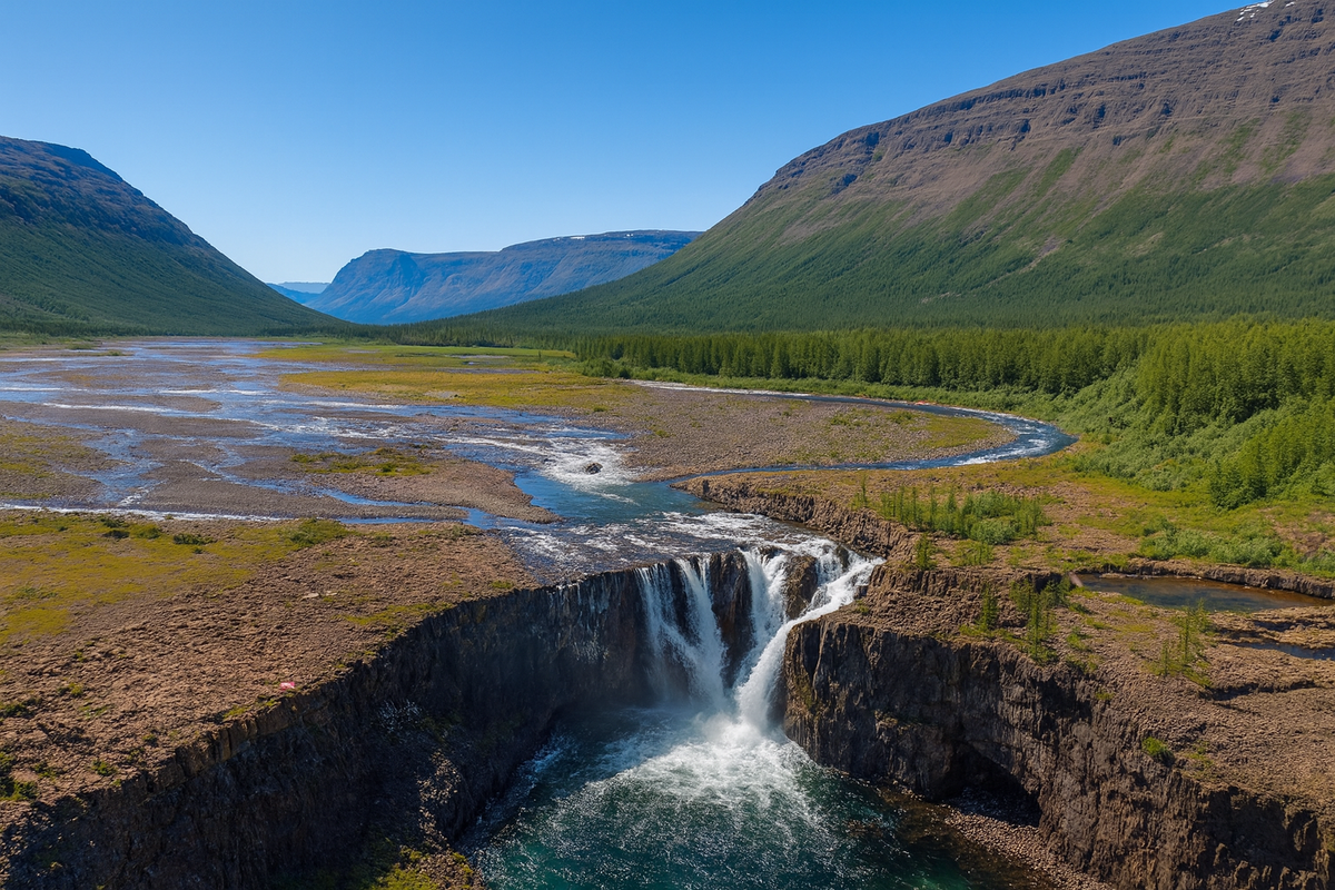 Плато Путорана считается одним из самых труднодоступных природных районов России. Его изрезанные каньоны, озерные системы и мощные водопады формируют ландшафт, который выглядит одновременно строгим и многослойным. Это территория, где пространство остается почти нетронутым, а человек встречается с природой в ее первозданном виде. Доступность здесь ограничена рельефом, климатом и удаленностью, поэтому многие участки плато остаются малоизученными. Ландшафт, сформированный древними процессами