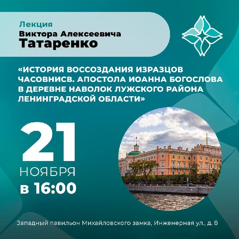 Встреча с художником Виктором Татаренко Государственный Русский музей приглашает студентов на уникальную встречу с художником-монументалистом Виктором Алексеевичем Татаренко. Темой встречи станет «История воссоздания изразцов часовни святого апостола Иоанна Богослова в деревне Наволок Лужского района Ленинградской области». В рамках цикла «Встречи с художником» вы узнаете о многолетней работе Виктора Татаренко по восстановлению утраченных изразцов часовни, чья история связана с именами Великого князя Михаила Павловича и Великой княгини Елены Павловны. Художник, выпускник Академии им. А.Л. Штиглица, работает в разных техниках — от масла и акварели до керамики и витража. Его творчество — это пример бережного отношения к культурным традициям России. 🗓️ 21 ноября в 16:00 📍Кинозал Западного павильона Михайловского замка (Инженерная ул., д. 4).