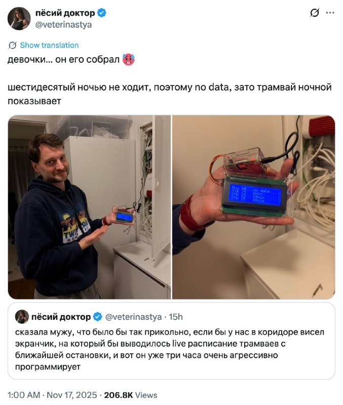 Парень собрал домашнее табло с расписанием трамваев — прям как на остановке, только у тебя на стене