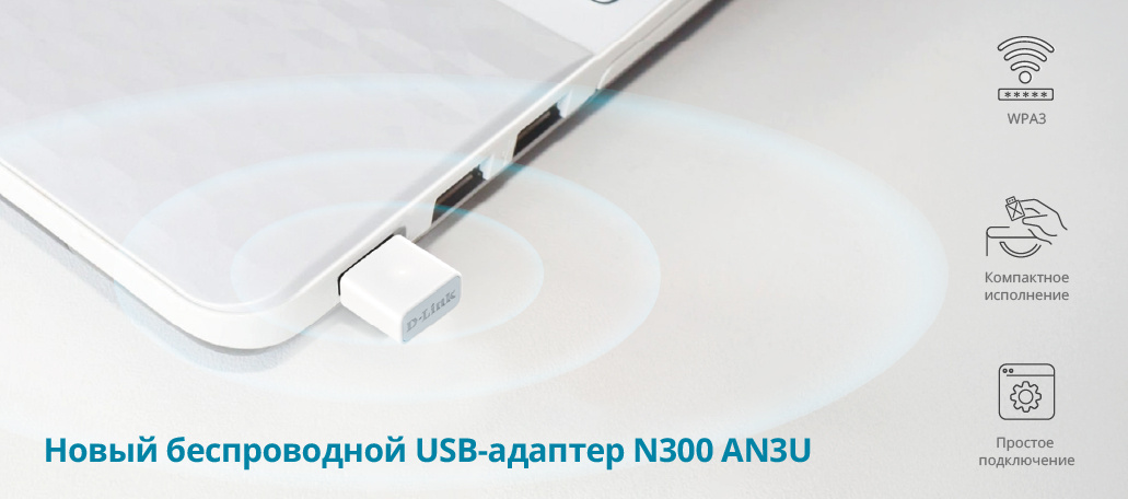 Компания D-Link представляет новый компактный беспроводной USB-адаптер AN3U