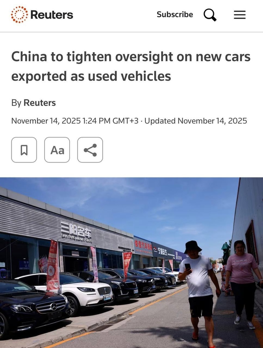 Китай фактически закрывает лазейку для вывоза новых машин — с 1 января 2026 года правила станут настолько жёсткими, что увезти свежий авто станет почти невозможно. Теперь машину нельзя вывозить ранее чем через 180 дней после регистрации, а покупателю придётся доказать, что она реально эксплуатировалась: показать пробег, документы. Экспортёров подержанных авто ждёт тотальный контроль, а для электрокаров вводят отдельные разрешения. Это означает задержки при поставке машин в РФ, рост цен и редкость новинок — ждать придётся минимум полгода. #автоновости #китайавто #экспорт #новыеправила #машины #автолюбители #авторынок