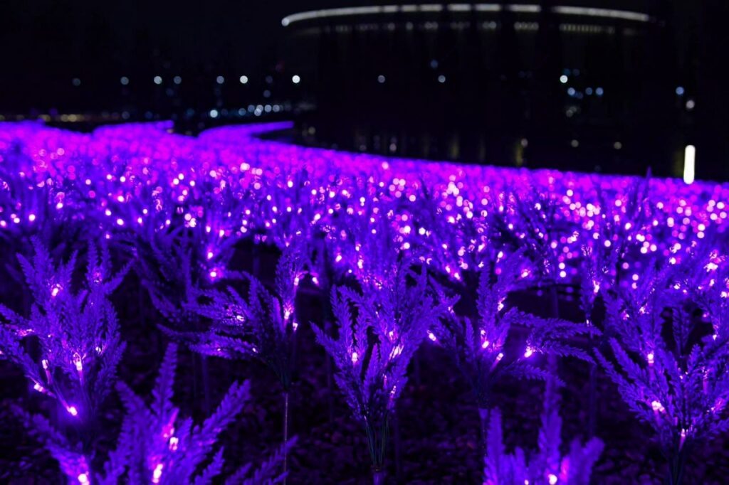 В парке «Краснодар» снова установили светящийся шалфей. Осенью и зимой он заменяет живые растения на клумбах, который убирают из-за холодов. Днем шалфей выглядит как обычный кустарник, а вечером включается фиолетовая подсветка. За счет многоярусных клумб, выполненных в волнообразной форме, создается впечатление, будто свет «разливается» по всему пространству. Электронный шалфей устанавливают в парке каждый ноябрь уже шесть лет подряд. Ранее «Краснодарские известия» писали, что в парке «Краснодар» устанавливают новый арт-объект «Мать-Земля».