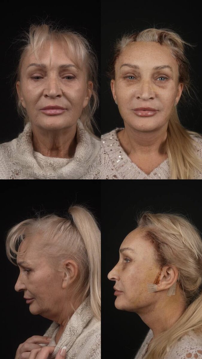 💌ПОВТОРНЫЙ ФЕЙСЛИФТИНГ + лобно-височный лифтинг с лифтингом средней зоны 👇🏻 Знакомьтесь, моя прекрасная пациентка Лариса, которой 62 года. ▪️12 лет назад девушка уже выполняла фейслифтинг, но нет ничего вечного и где-то 2-3 года назад всё вернулось. В данном случае мы не только выполнили фейслитинг, мы ещё и работали с верхней третью лица, чтобы получить полный Glow Up эффект 🔄Сейчас всего 14 дней, НО результат который мы наблюдаем просто потрясающий. В таком уверенном возрасте ткани обычно дольше заживают, но Ларису это вообще не коснулось и она довольно быстро и хорошо восстанавливается 🙌🏻 Пожелаем Ларисе легкой реабилитации 🌸