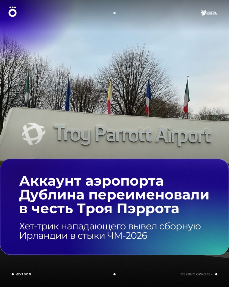 Теперь нападающий АЗ — главный герой Ирландии. И аэропорт в Дублине 👏🏻 Интересно, что переименуют дальше, если Пэррот еще и выведет свою сборную на ЧМ? 😏