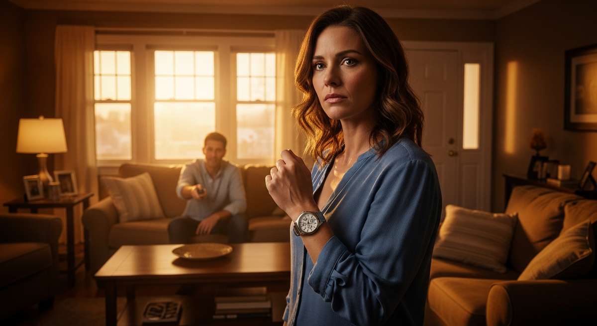 Взяла часы со стола. Надела. Металлический браслет холодный, тяжёлый, обхватил запястье. Я посмотрела на циферблат. Восемь вечера. Суббота. Через окно виден двор, где я «не умею парковаться». Диван, где он сидит с пультом. Моя сумка на стуле — в ней папка с теми самыми «заумными терминами», которые ему неинтересны.