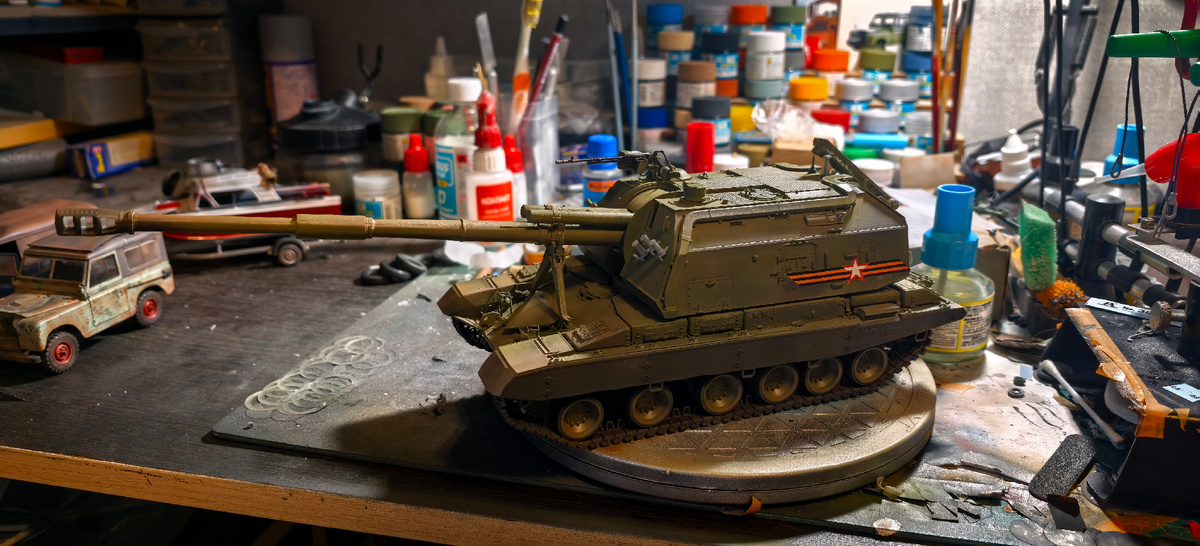 Всех приветствую! Ну что... Предфинал... Дожили. Желтая самоходка? Ни в коем случае НЕТ:) Просто так падает свет и пока нет возможности сделать нормальные фото, но тем не менее все будет как положено. Поэтому думаю что завтра одену антену, чуть по мелочам пробегусь и все. В очередь на фотосессию... Что следующее в 35? Честно говоря пока не знаю. Надо дораскидать 24 масштаб: Миуру, две Лянчи и уже думать что ставить на стол.