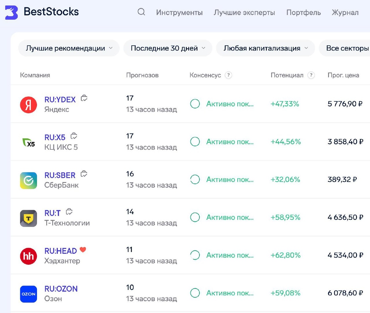 Топ-6 российских акций для покупки по мнению аналитиков У акций консенсус — активно покупать 🔥 Потенциал роста акций на год до +62,80% 🔥 Все акции с наибольшим количеством прогнозов аналитиков по ссылке Лента ежедневных рекомендаций по ссылке @beststocksru