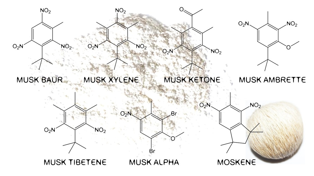 Полициклические мускусы очень стойкие и дешевые. Они настолько стабильны, что их обнаружили жировой ткане и в молоке кормящих матерей. Очевидно, молекулы успевали пройти путь из стирального порошка в канализацию, затем в море, там по пищевой цепочке подняться до рыб, которых мамочки употребили в пищу после термической обработки, и этот путь не разрушил стойкие полициклические молекулы!