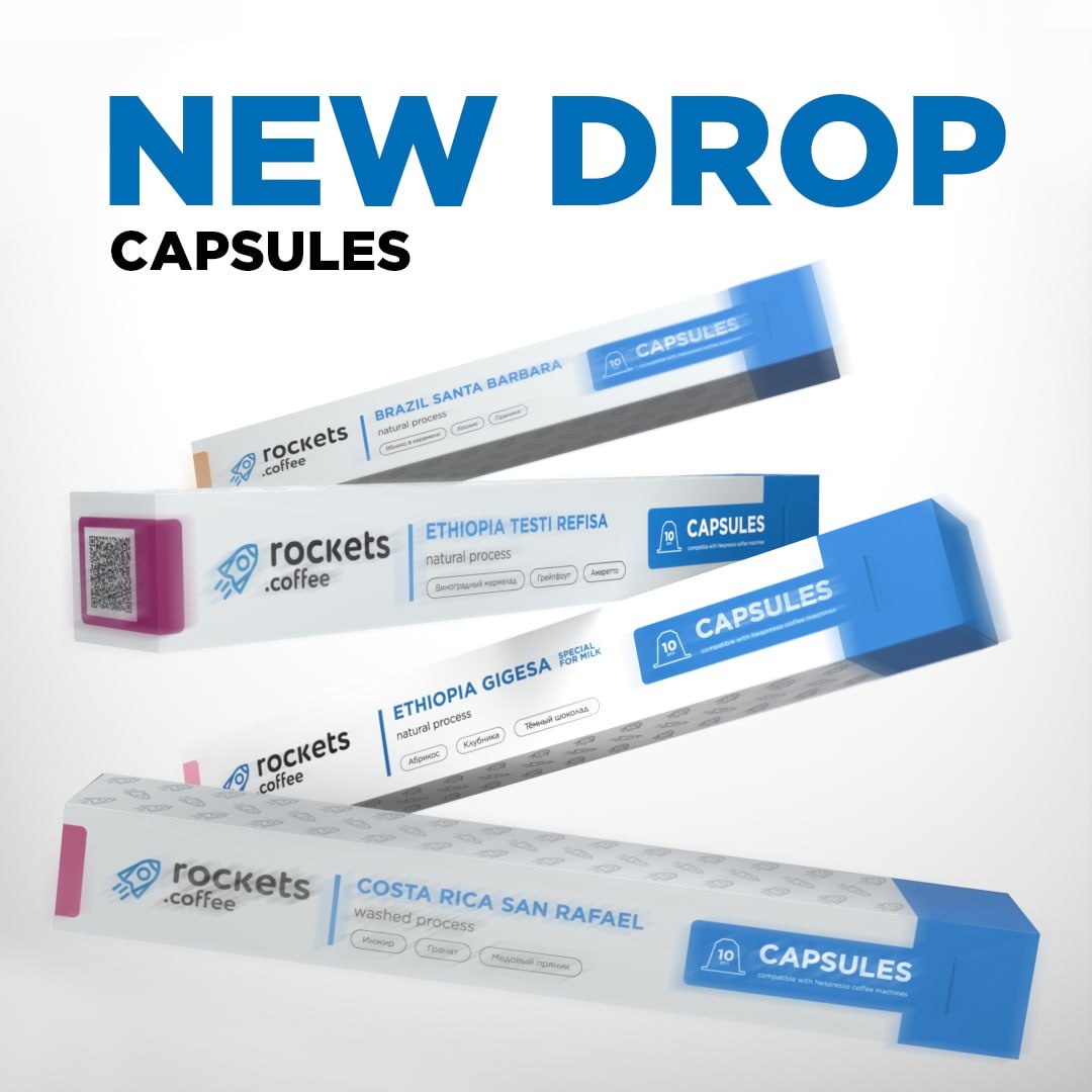 Новые капсулы для Nespresso уже на сайте 🤩 ETHIOPIA TESTI REFISA Сладкий яркий кофе с нотами виноградного мармелада, грейпфрута и амаретто во вкусе, с деликатной кислотностью и сиропистым округлым телом. COSTA RICA SAN RAFAEL Сладкий питкий кофе с нотами инжира, граната и медового пряника во вкусе, кремовым телом и спелой кислотностью. BRAZIL SANTA BARBARA Плотный кофе с сиропистым телом и выраженным шоколадно-ореховым букетом ETHIOPIA GIGESA *special for milk Яркий сладкий кофе с нотами клубники, абрикоса и тёмного шоколада, сочной кислотностью и плотным кремовым телом. rockets.coffee 🚀