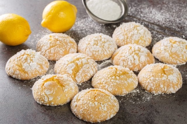 Лимонное печенье с трещинками Ингредиенты: для основы – 200-250 г муки, 100-130 г сливочного масла, 1 яйцо, 100 г сахара, 2 ст.л. сока лимона, 1 ст.л. цедры лимона, 1 ч.л. разрыхлителя, сахарная пудра для обсыпки. Приготовление. В глубокой миске взбейте яйцо с сахаром до пышной массы. Добавьте растопленное масло, лимонный сок и цедру. Перемешайте. Постепенно всыпьте муку с разрыхлителем, замесите мягкое тесто и отправьте его на полчаса в холодильник. Скатайте из "отдохнувшего" теста шарики, обваляйте их в сахарной пудре и выложите на противень. Отправляйте в разогретую духовку и выпекайте на 180°C примерно 12-15 минут.