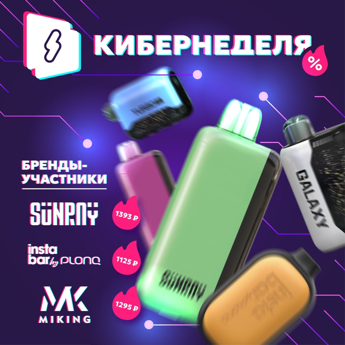 КИБЕРНЕДЕЛЯ в ХУКАЦЕНТР! Вот бренды, на которые стоит обратить внимание: 💛Sunray — компактность, стиль и приятные вкусовые решения 💛9000 затяжек / -30% (1393₽) 💛PLONQ Instabar — мягкие, натуральные ароматы и фирменный дизайн 💛5000 затяжек / -25% (1125₽) 💛10000 затяжек / -25% (1425₽) 💛MIKING — продуманная конструкция, яркий стиль и длительная работа устройства 💛12000 затяжек / -30% (1295₽) 💛25000 затяжек / -25% (1379₽) 💛40000 затяжек / -30% (1610₽) 💛И да, через нашего Эксперта выбирать нужное стало еще проще — попробуйте сами!