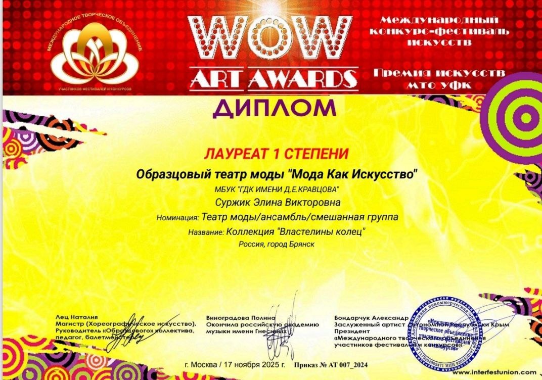 🎉ПОЗДРАВЛЯЕМ ОБРАЗЦОВЫЙ ТЕАТР МОДЫ "МОДА КАК ИСКУССТВО" С ПОБЕДАМИ