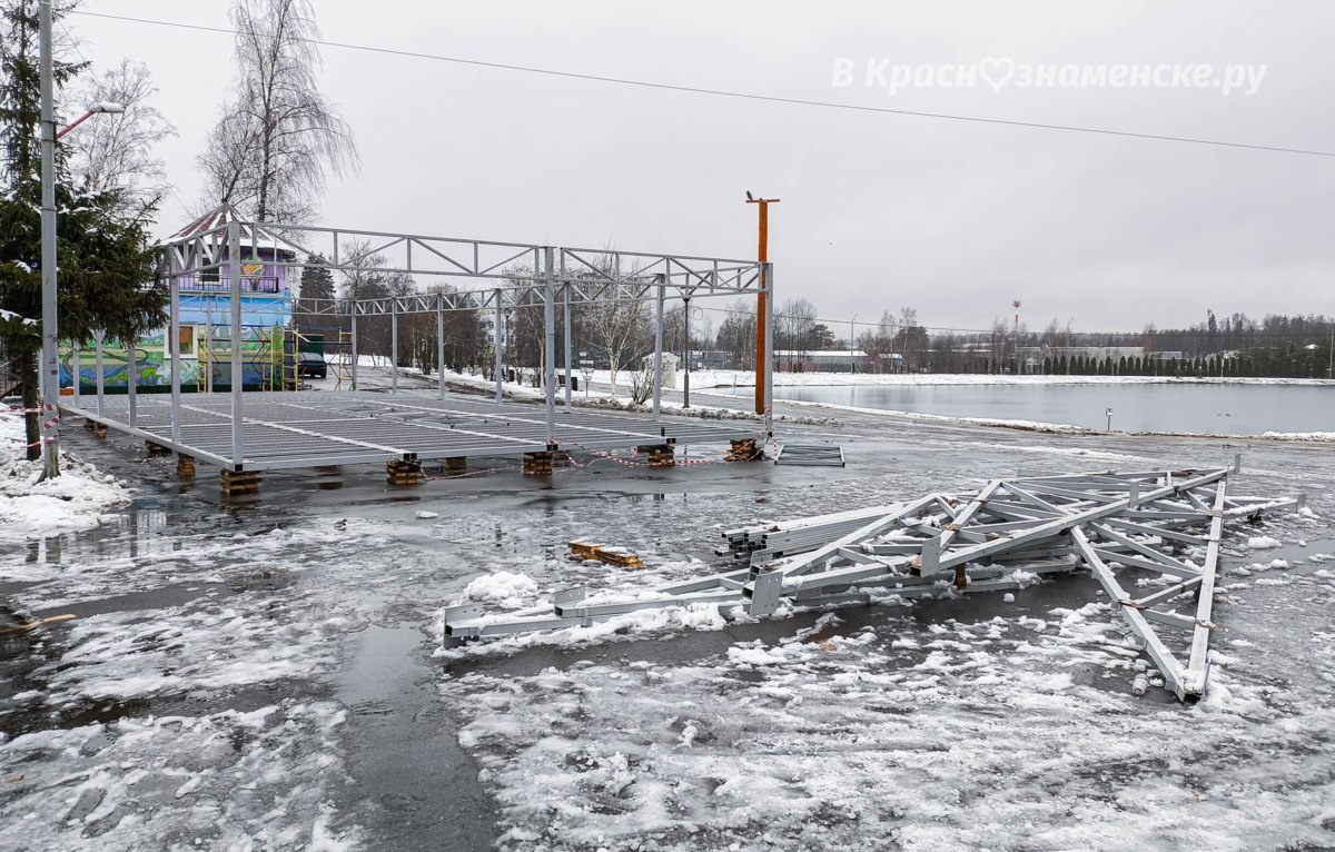 В Городском парке, рядом с бывшей спасательной вышкой, уже начали возводить павильон для проката коньков