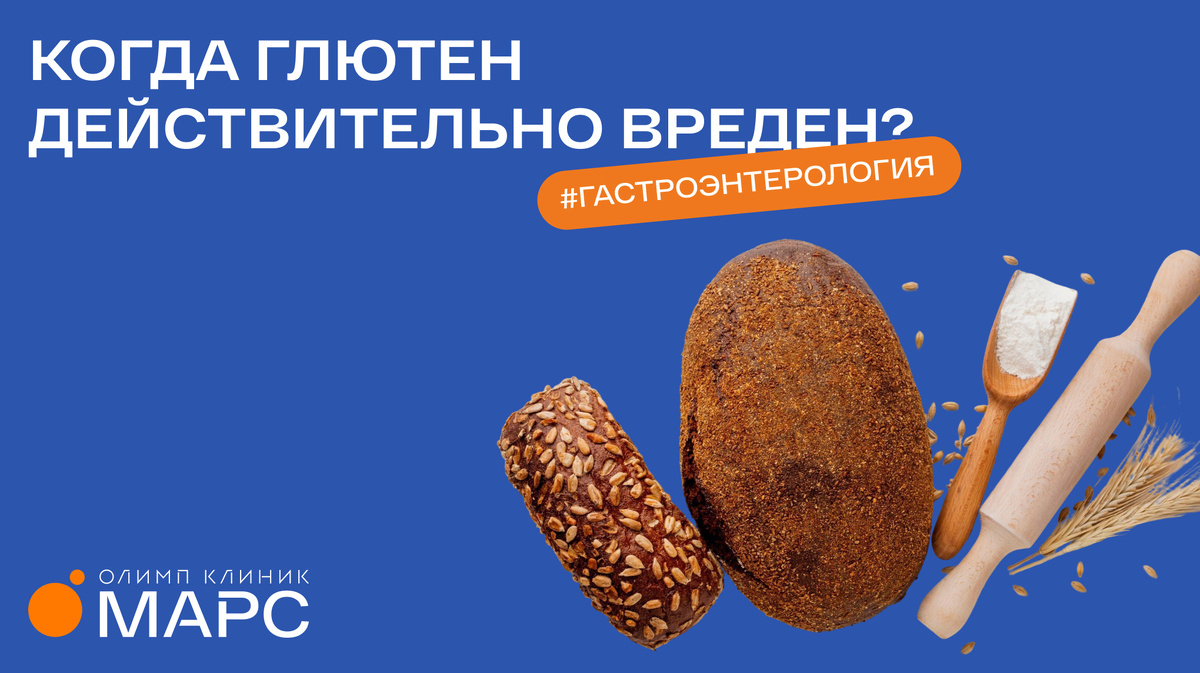 Глютен давно оказался в черном списке у многих фанатов здорового питания. Его настолько боятся, что совсем забывают, что безглютеновая диета без прямых показаний может привести к неприятным последствиям: дефициту клетчатки, витаминов и минералов. Глютен - это группа белков, содержащихся в пшенице, ржи и ячмене. О том, в каких случаях стоит отказаться от глютена, а когда достаточно лишь сократить его потребление, рассказала Елена Владимировна Трейман, врач-гастроэнтеролог Олимп Клиник МАРС. Глютенассоциированные состояния: 1. Целиакия — аутоиммунное заболевание. У людей с генетической предрасположенностью белки пшеницы, ржи и ячменя вызывают воспаление в тонкой кишке и атрофию ворсинок. Только при этом заболевании нужна строгая пожизненная безглютеновая диета, которая позволяет войти в ремиссию. 2. Аллергия на пшеницу. В этом случае реакция на глютен возникает довольно быстро, вызывая боль в животе, сыпь, кашель, удушье. Для исключения аллергии на белок пшеницы исследуют специфический
