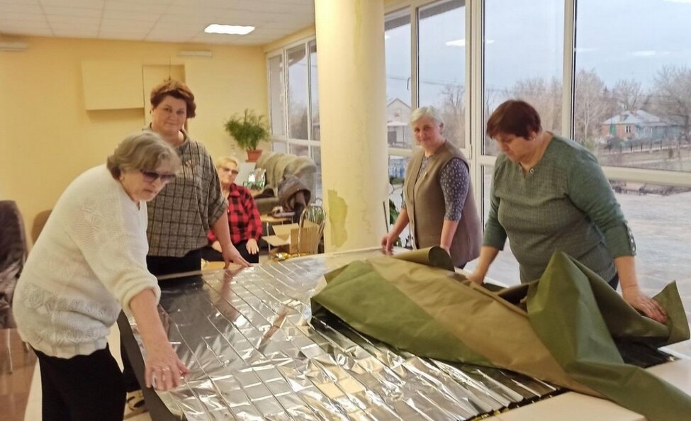 Швеи клуба «Субботея» из села Талицкий Чамлык Добринского района Липецкой области создают антидроновые пончо. В таких накидках бойцы СВО становятся невидимыми для вражеских «птичек». Заказ на такие накидки поступил швеям от бойцов. Первую партию женщины уже отправили на фронт, теперь ждут ответа от солдат. Вдруг, надо где укоротить или добавить. — Магазинные пончо обходятся раз в 5-6 дороже, — рассказала газете «Добринские вести» руководитель клуба «Субботея» Татьяна Нестерова. — Там примерно цена начинается от 5-6 тысяч рублей и доходит до 50. У нас себестоимость — около тысячи". Деньги на изготовление нужных бойцам накидок они собирают всем миром. Как только получат отзыв от бойцов, приступят к изготовлению пончо на постоянной основе. Вначале швеи из «Субботеи» делали специальные антитепловизорные одеяла, в месяц не менее 200 штук. Изделие похоже на многослойный пирог, где главную роль играет серебристо-золотая фольга. Серебристой стороной металлизированная плёнка отражает тепловое
