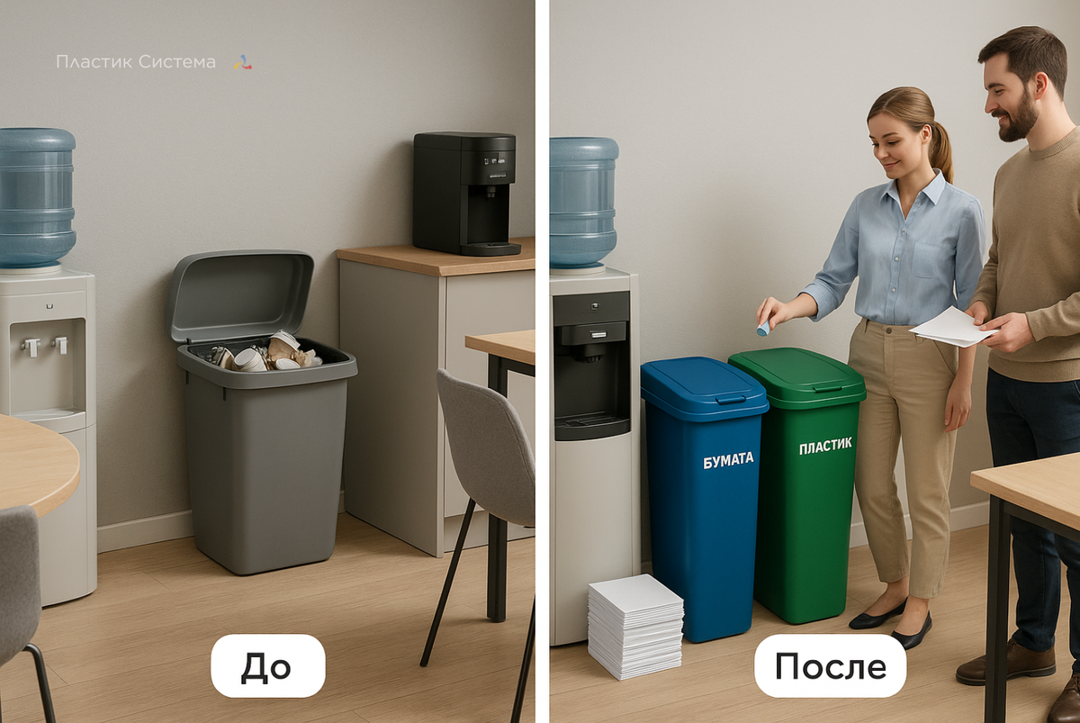 Иногда кажется, что мусор живёт собственной жизнью: появляется из ниоткуда, растёт как живой организм и вечно стремится вырваться из контейнера. А если рядом стоят два бака без подписей, начинается настоящая «лотерея», где каждый бросает отходы наугад. Иногда кажется, что мусор живёт собственной жизнью: появляется из ниоткуда, растёт как живой организм и вечно стремится вырваться из контейнера. А если рядом стоят два бака без подписей - начинается настоящая «лотерея», где каждый бросает отходы наугад.ались даже те, кто обычно игнорирует любые инструкции. Представьте офис, где возле кофейного автомата стоит один серый бак. В него летит всё: от стаканчиков и чая до пакетов и огрызков. Через пару часов появляется запах, а через сутки гора мусора. А теперь представить ту же точку, но с двумя контейнерами: