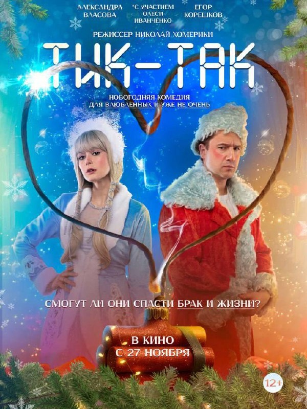 🎬 Брак актёров Савельевых находится на грани развода — их не останавливает даже Новый год. Супругам осталось отыграть последний спектакль в роли Деда Мороза и Снегурочки, а возможно, и в роли мужа и жены. Во время представления Артём и Алёна оказываются запертыми вдвоём в гримёрке с тикающей бомбой. Теперь им предстоит не только выжить, но и попытаться спасти свой брак. 👉 Это — описание фильма «Тик-Так», который выйдет в кинотеатрах 27 ноября! Картина режиссёра Николая Хомерики стала одной из самых масштабных работ в 2025 году в рамках АНО ArtMasters. ArtMasters — это экосистема по формированию кадрового потенциала креативных индустрий в России, творческая лаборатория для создания новых уникальных компетенций и отбору специалистов, готовых встроиться в технологические и производственные процессы любой сложности в самых крупных медиакорпорациях, театрах и кинокомпаниях. 🤝 Фильм создан при поддержке Министерства культуры РФ. В производстве фильма приняли участие 20 финалистов чемп