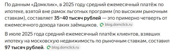 Важно понимать, что цифры в 35-40 тыс. рублей для регионов и 97 тыс. для Москвы являются средними показателями по рынку. Реальные платежи сильно зависят от суммы кредита и срока: для квартир стоимостью выше 20 млн рублей в столице ежемесячный платеж может превышать 150 тыс. рублей даже при рыночной ставке. В предыдущей статье я рассказывал о том, какие изменения ждут семейную ипотеку, но текущая ситуация требует фокуса на реалиях рынка — ведь даже по льготным программам платежи для дорогого жилья остаются существенными.