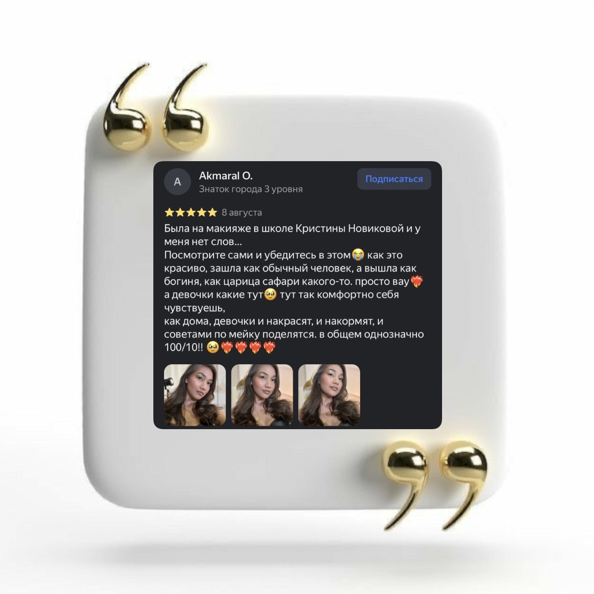 К нашим ученицам на практику, как правило, приходят не профессионалы, а обычные девушки. И для каждой из них мы создаем не просто макияж, а конкретный результат: 1. Продуманный стиль: Модели выходят из студии с полной уверенностью в своей внешности. Работа сделана технично, чисто и с учетом всех пожеланий. 2. Готовый образ для важного события: Многие приходят перед свиданием или просто чтобы порадовать себя. Они получают законченный образ, в котором чувствуют себя комфортно и привлекательно. 3. Профессиональные фотографии для своего архива и соцсетей: Каждая модель получает качественные фото в готовом образе — это не только приятный бонус, но и реальный кейс для ее личного портфолио. Многие вообще начинают модельную карьеру после участия в наших отработках. По итогу, наши гостьи уходят с крутым итогом, который они могут применять и в своих личных целях. Хотели бы статью частью нашей команды, может и в качестве модели?