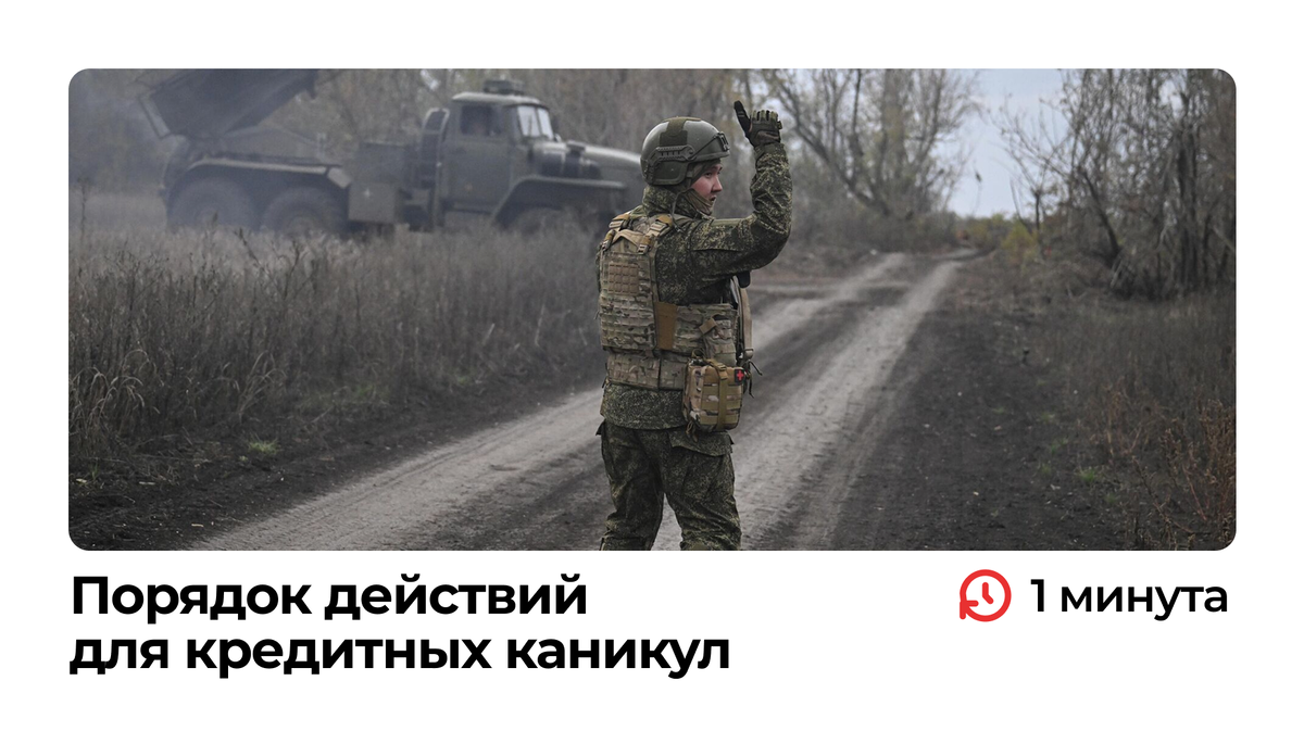 История Виктора П. Виктор П. решил перестраховаться и оформил кредитные каникулы на три месяца сразу после подписания контракта. Через неделю на его счёт поступила единоразовая выплата в 3 000 000 рублей. Получив деньги, Виктор полностью закрыл кредит одним платежом и избавился от долгов Срок действия кредитных каникул Кредитные каникулы предоставляются на весь период участия в СВО и автоматически продлеваются ещё на 180 дней после окончания службы. Если заёмщик проходит стационарное лечение из-за ранений или болезней, полученных на СВО, срок каникул может быть увеличен. До 31 декабря 2025 года обратитесь к своему кредитору любым способом, указанным в договоре. Понадобятся: Заявление рассматривается до 10 дней. Кредитор предоставит новый график платежей на время каникул. Обратитесь к менеджерам проекта «Защитник РФ». Здесь ветераны СВО, которые прошли этот путь, помогают оформить документы на контракт с максимальной выгодой.