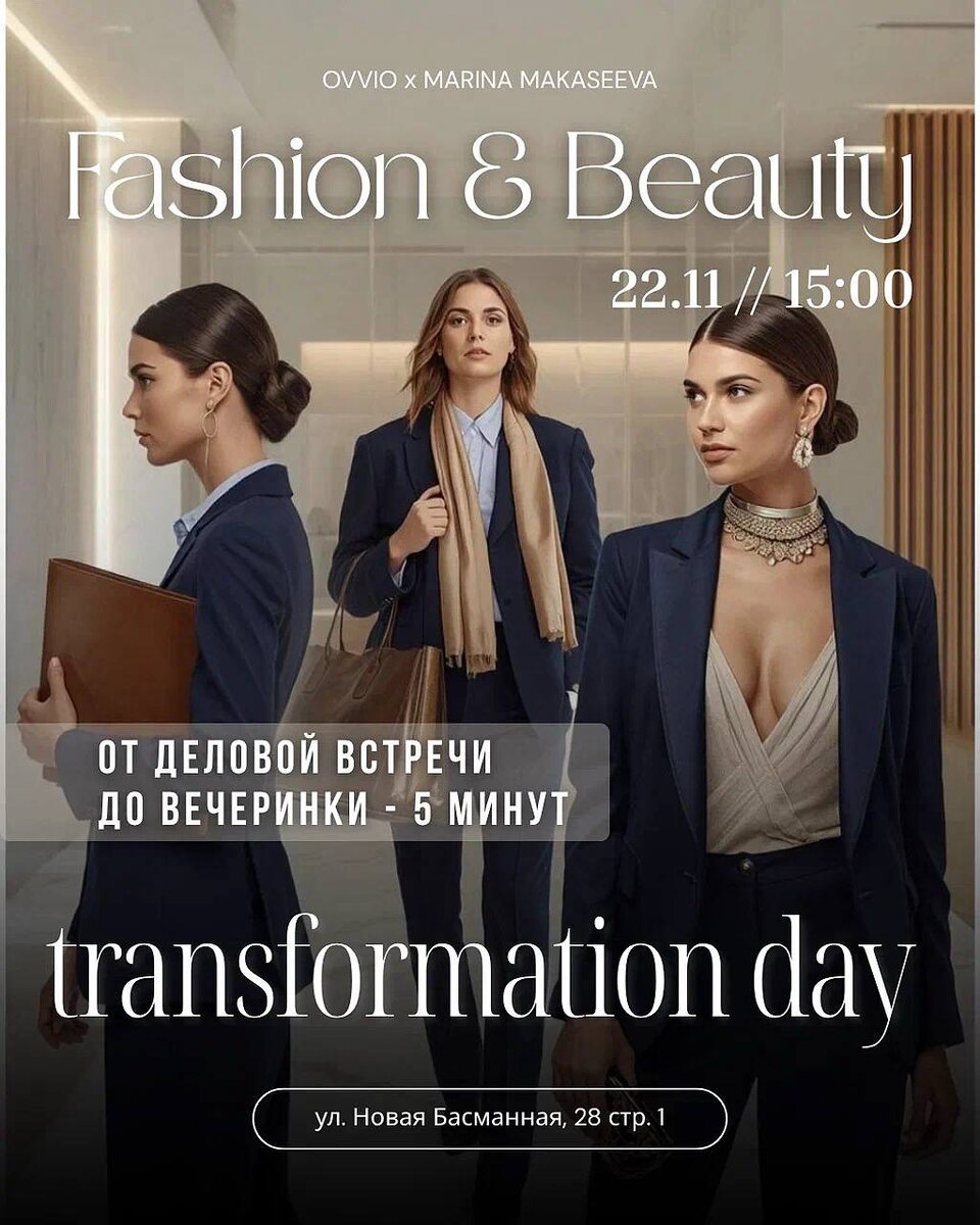 «Знакомо чувство, когда день расписан по минутам, а нужно успеть везде и всюду? ⏳ И главный вопрос: что надеть и как уложить волосы? Мы нашли решение и готовы поделиться им с вами! Бренд деловой одежды OVVIO и топ-стилист по волосам Марина Макасеева приглашают на закрытый воркшоп, где мы на практике покажем, как один костюм и 5 минут могут изменить ваш образ с утра до вечера. Готовы научиться экономить время с помощью стиля? Ждем вас 22.11 к 15:00 Место встречи: Новая Басманная, 28/1 ➡️ Вас ждут живые трансформации, проф. советы по укладкам, игристое, угощения и приятная компания! ➡️ Мероприятие бесплатное, регистрация обязательна! Успейте забронировать место! Регистрация по ссылке https://instyle.zone/style2211?utm_source=ovvio_tg