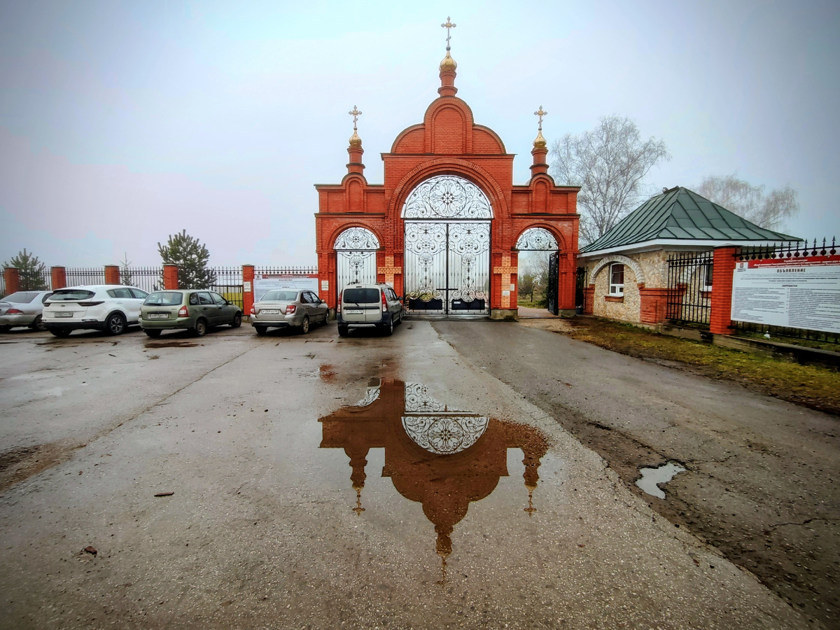 Поехал в городок Мещовск. Калужской области. Городок старинный. Впервые Мещовск упоминается в летописи в 1238 году. Чуть Москвы помоложе. А в конце 15 века около Мещовска основали монастырь в честь великомученика Георгия Победоносца. В начале 17 века, во время Смуты, монастырь был полностью разрушен. Возродили. В 1764 году Екатерина II секуляризационную реформу провела. Оптимизацию монастырского хозяйства. Оптимизация, как водится, привела к полному разорению обители. Опять возродили. Потом большевики. Теперь снова возрождают. Парковка около трехглавых кирпичных ворот. Но это не вход в монастырь. В предмонастырье. До монастырских ворот еще метров двести. Справа- современная постройка. С объявлением на двери: "Служебный вход". Слева- памятник верблюду. Любит живность монастырская братия. Свой коровник имеется. С буренками. Овечки. У входа на дереве огромные скворечники. Оказывается, это не скворечники. Белочки тут живут. У стены- птичник. Индюки прочие пернатые. То ли в эстетических ц