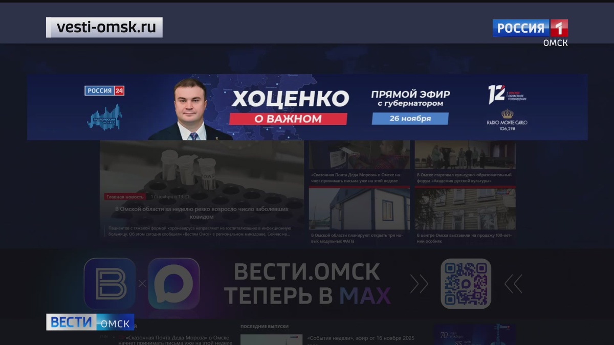 В ней губернатор подведёт итоги года. Омичи уже оставили более 70 сообщений. Программа выйдет в эфир 26 ноября в 20:00 часов на канале «Россия 24» и на 12 канале. Также трансляция будет вестись во всех наших соцсетях. Чтобы оставить свой вопрос губернатору, нужно зайти на сайт «Вестей Омск» и заполнить специальную форму.