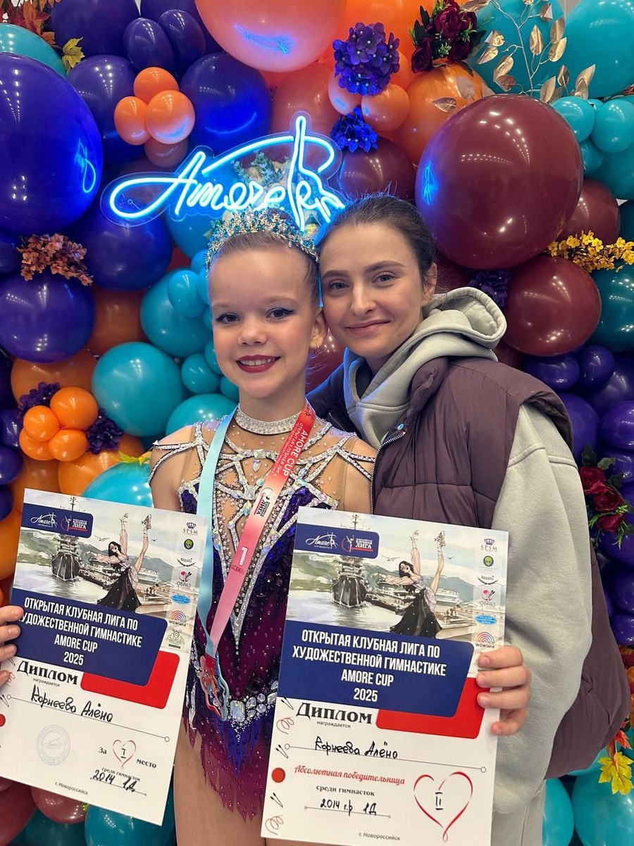 Ейские гимнастки выиграли 9 медалей на турнире по художественной гимнастики «Amore cup» 16 ноября в Абрау-Дюрсо прошёл открытый турнир по художественной гимнастике «Amore cup». В соревнованиях приняли участие более 300 спортсменок. Ейск представляли гимнастки спортивного клуба художественной гимнастики «Лина». Золотые медали завоевали: Алинезова Сафина, Корнеева Кира, Волкова Кира, Чечетенко Стефания, Жарова Софья, Кошечкина Милана, Байрамлы Лейла, Корнеева Алёна. Серебрянную медаль завоевала Подчуфарова Валерия. Подготовили гимнасток тренеры: Кузнецова Алина Сергеевна и Голикова Алина Витальевна. Подписаться на нас в MAX #Ейск #Ейск24 #спортЕйска #гимнасткиЕйска
