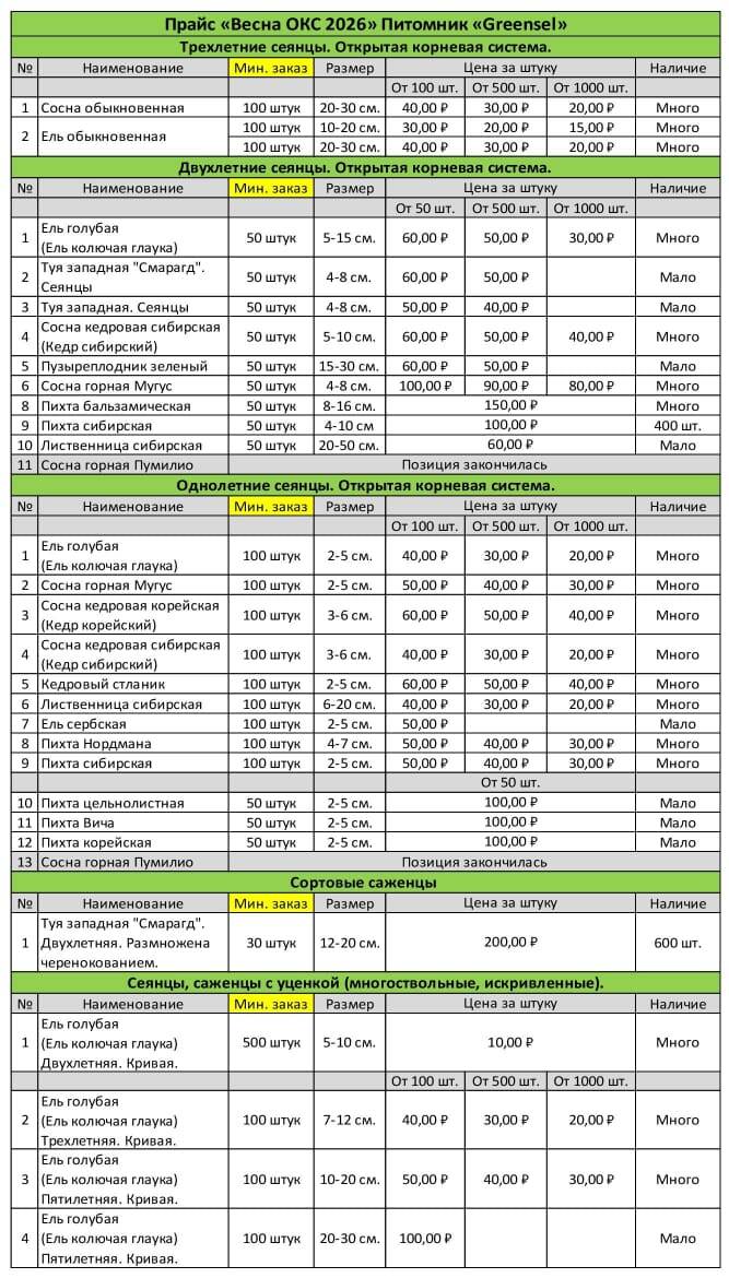 ‼️🌲ОБНОВЛЕНИЕ ПРАЙСА принимаем предзаказы (бронь) на весну 26г ЗАКОНЧИЛИСЬ: ❌ Пихта Сибирская- 3 год. ❌ Кедровый стланик- 3 год. ———————— ————— 🤝ПО ОФОРМЛЕНИЮ ЗАКАЗА —- ВОПРОСЫ писать на вацап 89053935050 Наталья или Телеграм @LessRaido