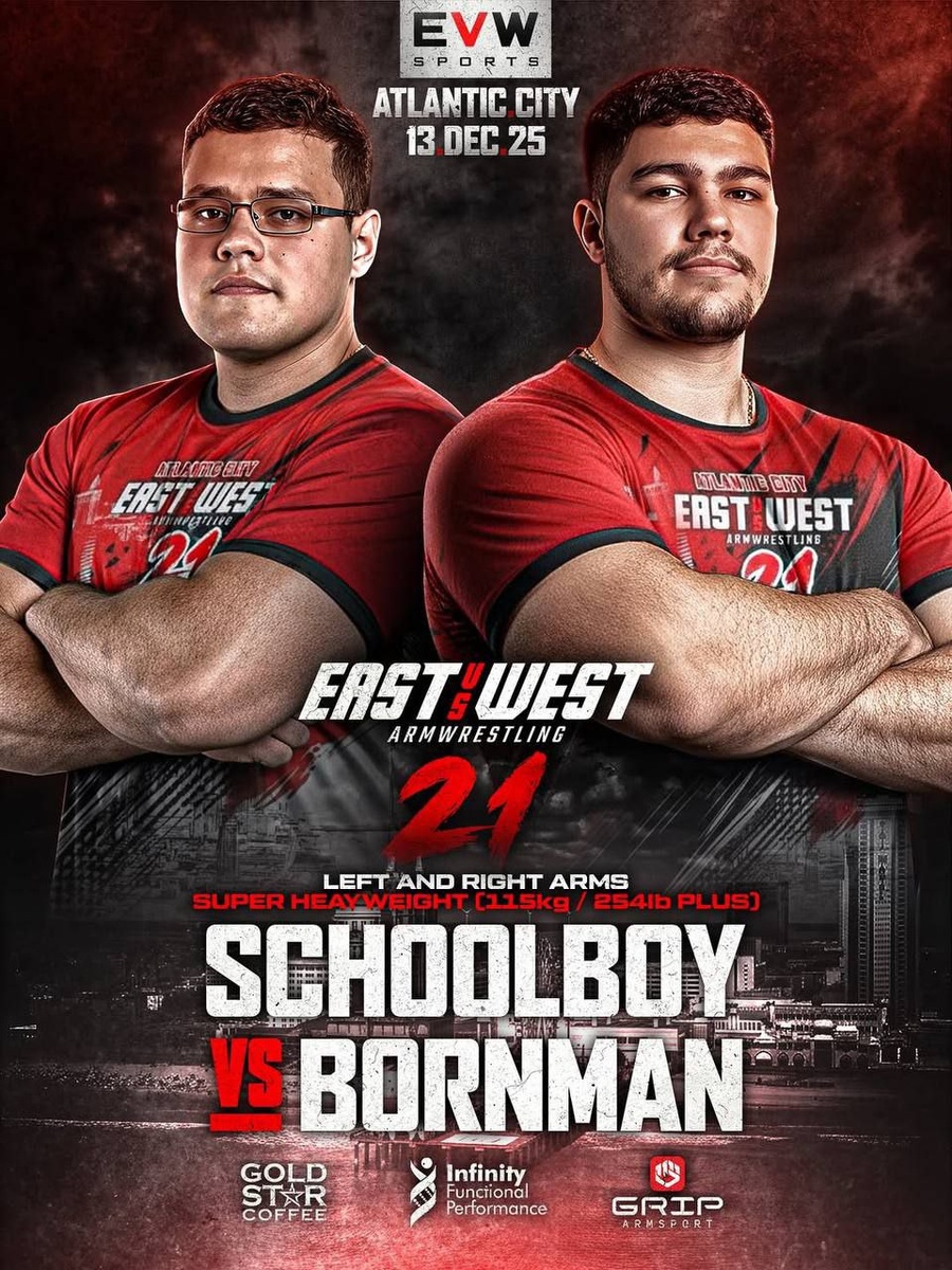 ❗️Ну а вот и анонс того поединка о котором все так говорили — Александр «Schoolboy» Безъязыков vs Рикерд Борнман | Поединок на обе руки, супертяжёлый вес, 13 декабря, East vs West 21, «Атлантик Сити» 🇺🇸 🔖 Организаторы EvW весьма долго говорили о этом поединке, и вот вчера, после того как Скулбою одобрили ВИЗу в США Роберт Бакстер на стриме подтвердил этот поединок. Армфайт пройдёт в виде двойного, сразу на две руки, в начале инвента на правую руку и ближе к окончанию East vs West 21 на левую, впрочем как Ларратт боролся против Курдечи в августе. ❓Кого считаете победителем этого противостояния? ❤️ - Скулбоя 🆚 ⚡️ - Борнмана Наш канал | Чат | Магазин @MusiSs_Sport_bot #armwrestling #EvW