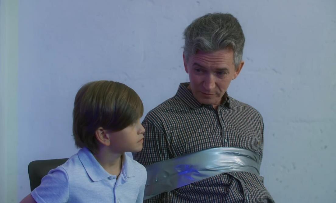 Тем временем героические соседи решают самостоятельно сразиться со злом и выдвигаются на помощь мальчику, потому что Мария Ефремова случайно запомнила марку и номер машины похитителей вместе с регионом, а пожилой мужик быстренько пробил её по базе через свой смартфон.