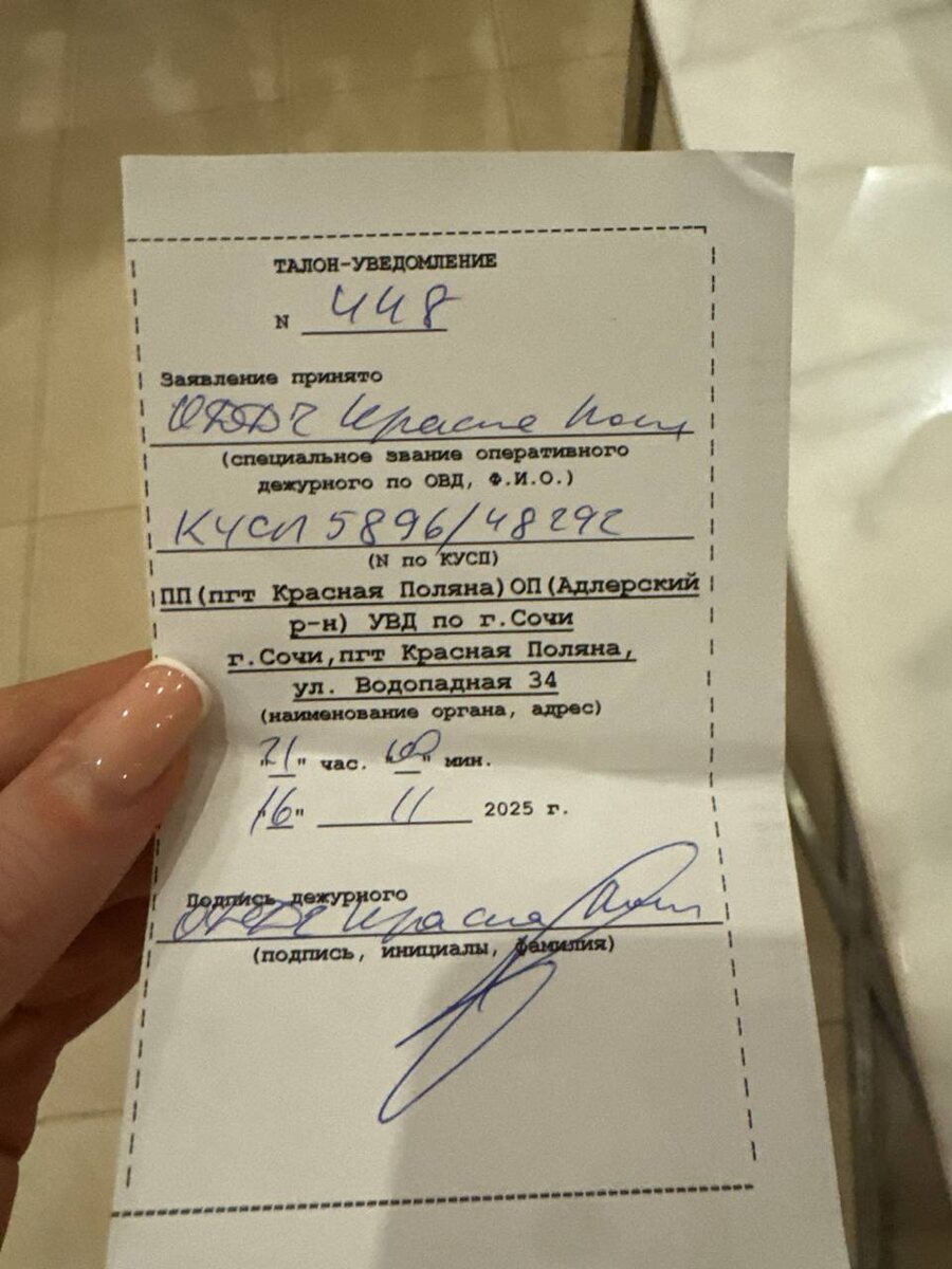 В Сочи полиция проводит проверку по факту инцидента в п.Красная Поляна В пункт полиции поселка Красная Поляна с заявлением обратилась девушка, которая сообщила, что на пешеходном переходе у нее произошел конфликт с неизвестными мужчинами, в ходе которого ей были причинены телесные повреждения. В настоящее время по данному факту проводится проверка, в рамках которой устанавливаются обстоятельства произошедшего и личности причастных к инциденту лиц. По окончании будет дана процессуальная оценка действиям всех участников конфликта. 🔥 Подписаться | Мы в MAX