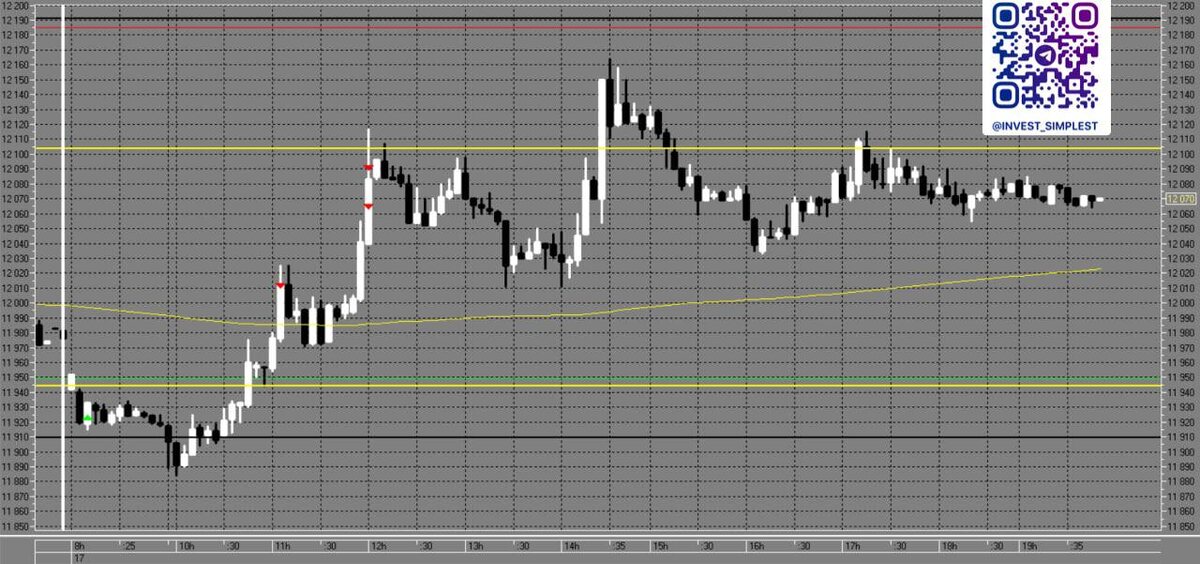 ПАО «Газпром»: декабрьский фьючерс. Работа с позицией продолжается… Имеющаяся позиция была увеличена за счёт срабатывания выставленной накануне заявки вблизи ценового минимума воскресенья. Снова блестяще отработал робот. А вот фиксацию утреннего объёма и части ранее набранной позиции проводил вручную. Несмотря на отсутствие направленного движения, как в базовом активе, акциях ПАО «Газпром», так и в производном инструменте, декабрьском фьючерсе, фиксация прибыли продолжается ритмично. Цели 🎯 короткие, но за счёт объёма результат получается достойным. Логика работы с позицией продемонстрирована в предыдущих постах. Таймфрейм: пять минут. Направление: лонг. #трейдинг #фьючерсы #газпром