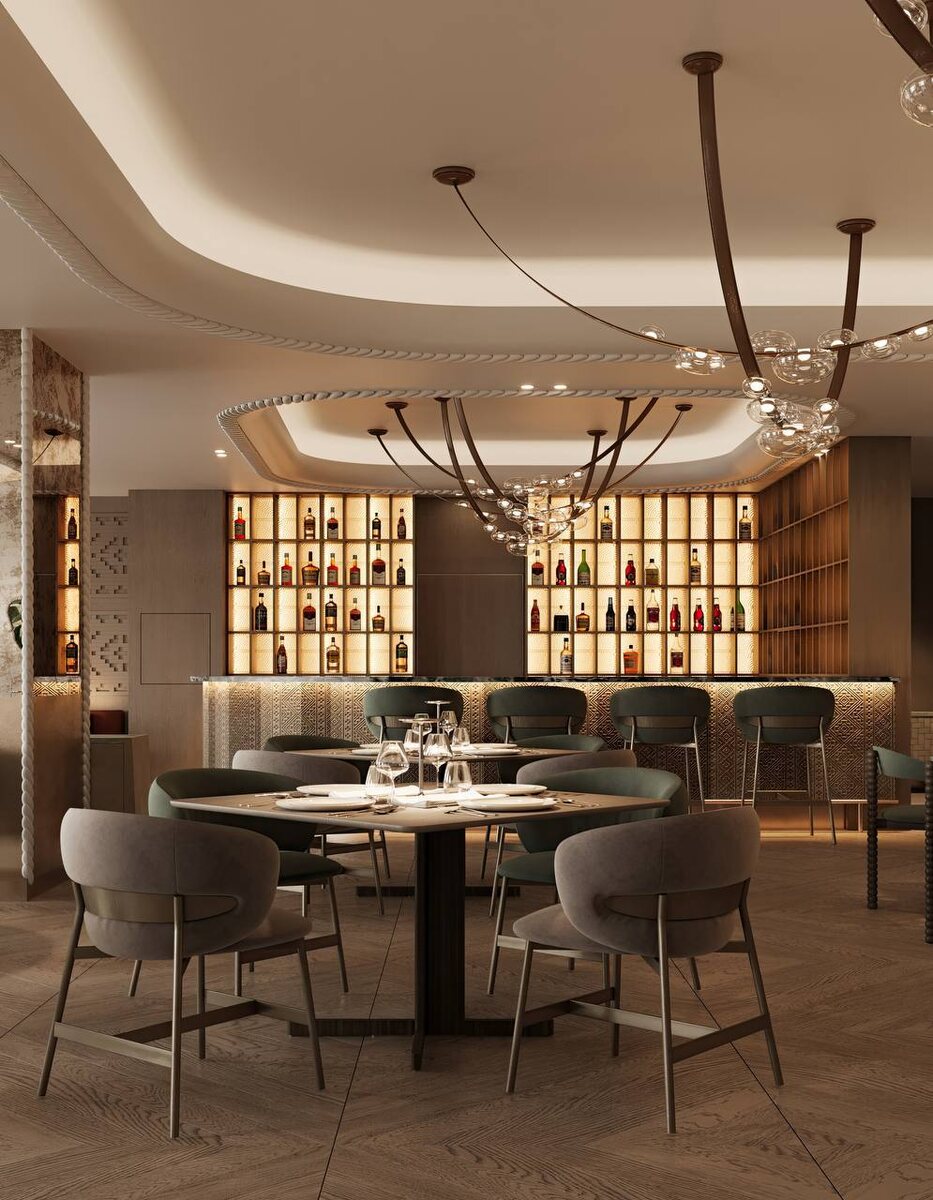 ✅Рабочая столешница и эргономика — планировка для комфортной работы бармена; столешница из выразительного, но прочного камня, чтобы служила долго, а напитки выглядели выигрышно. Именно так мы и сделали в проекте ресторана «Притча»!