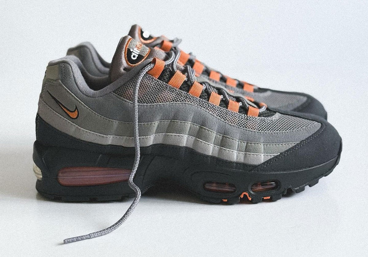 Nike Air Max 95 "Hot Curry" 🎨 Nike представили образцы Air Max 95 в расцветке "Hot Curry". Модель выполнена в серой градиентной гамме, напоминающей популярную расцветку "Bright Mandarin", но с более приглушённым оранжевым акцентом. Отличия включают серый цвет язычка, подкладки и сетчатого материала верха, а также более тёмные накладки, переходящие от светлого к тёмному оттенку. Оранжевые элементы присутствуют в петлях шнуровки, логотипе на язычке, контурах Swoosh и воздушной подушке. 👟 По предварительным данным, релиз модели возможен в 2026 году. Ожидается также возвращение расцветок "Comet" и "Olympic", а также коллаборация с японским ритейлером atmos.