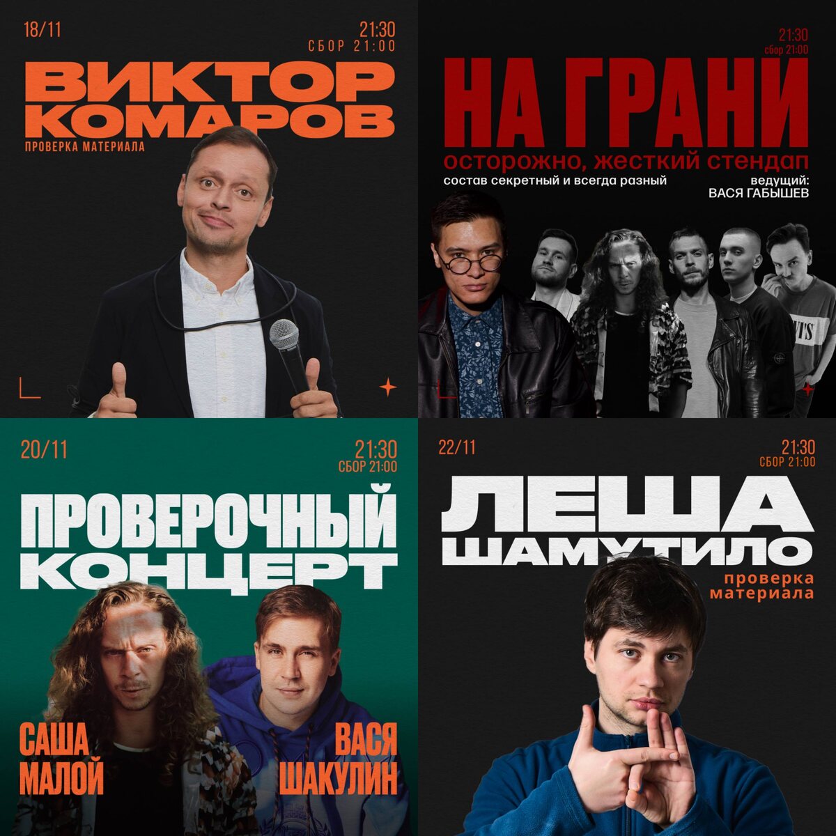 Так ребята, сейчас все очень серьезно! Ловите дайджест концертов на этой неделе в московском Still StandUp Club: ✔️Виктор Комаров. Проверка материала — 18 ноября, начало 21.30 🎫 Билеты 1500-2000₽ ✔️Сборный концерт "Стендап на Грани", проверка материала опытных комиков. Актуальный состав: Настя Чубарова, Полина Газаль, Арам Заргарян, Инал Хатков, Макс Поваго, Арман Саакян, Виталий Веснер — 19 ноября, начало 21.30 🎫 Билеты 500₽ ✔️Саша Малой и Вася Шакулин. Проверка материала — 20 ноября, начало 21.30 🎫 Билеты 1000-2000₽ ✔️Лёша Шамутило. Проверка материала — 22 ноября, начало 21.30 🎫 Билеты 1000-1800₽ Мы сами будем и вам неистово рекомендуем к посещению! Будем вместе топить холод и снег четким юмором и диким смехом 😂 📆 18-22 ноября, в 21:30 📍 Still StandUp Club, Москва, ул. Покровка, 17, стр. 5, м.Чистые пруды