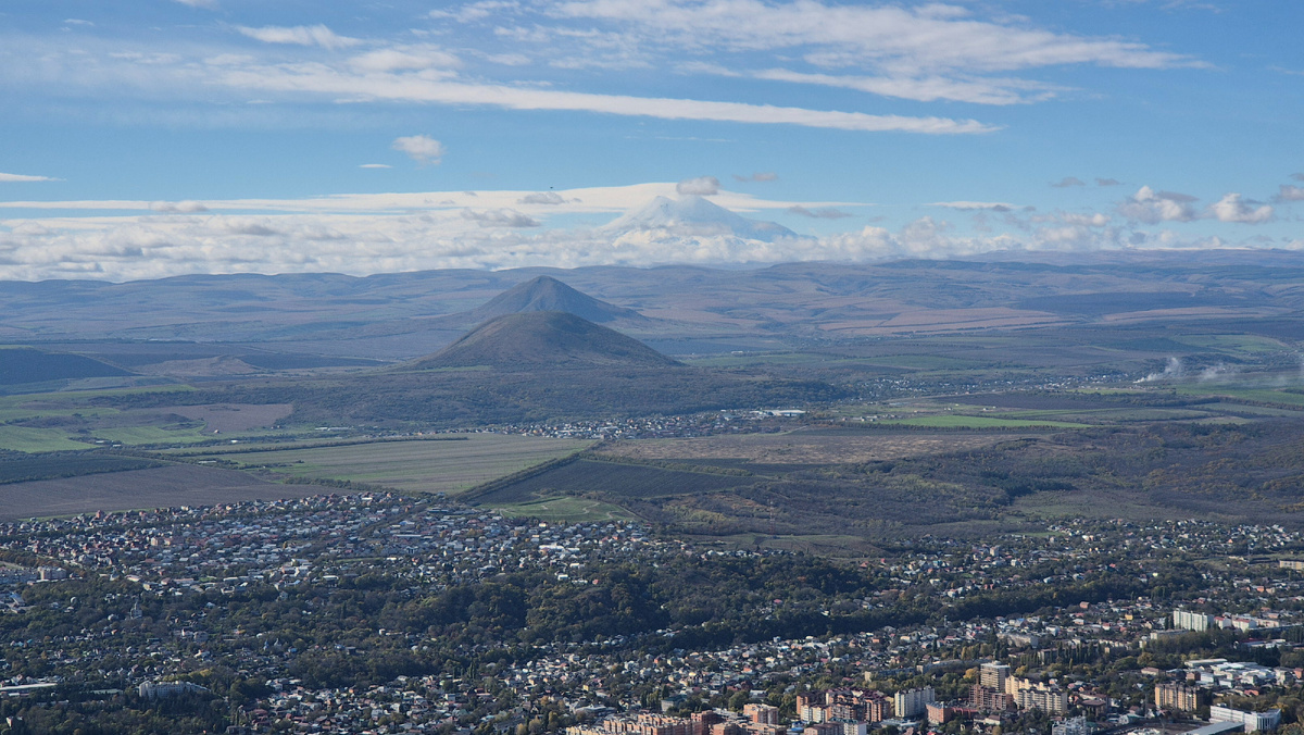 Всем привет! Побывать в Пятигорске и не подняться на гору Машук? Это было бы очень странным поступком. В любую погоду подъем на гору Машук - это красивое и запоминающееся приключение. Вдали по пути к Эльбрусу по прямой линии у нас открывается вид на гору Джуца - она ближе и Юца - она дальше, остроконечная. Это самые южные горы Пятигорья. На горизонте возвышается двухвершинный Эльбрус, подпираемый облаками! Вот им мы и залюбовались! Пятигорск - красивый город с красивой историей и героическим прошлым! Моя прогулка на гору Машук продолжалась недолго. В планах приехать в Пятигорск и пройти с вершины пешком до нижней станции канатной дороги. Небольшая лента ярких фотографий города Пятигорск! Фотография вида, ради которого был подъем на Машук. За Эльбрус зацепились облака. А какие виды, открывающиеся с вершины горы Машук больше всего понравились вам?